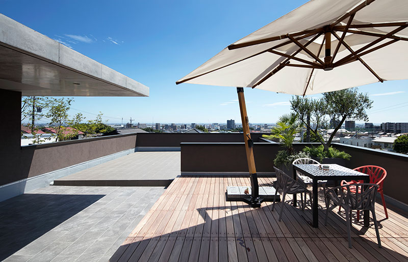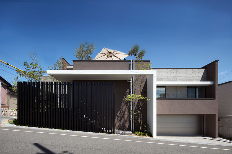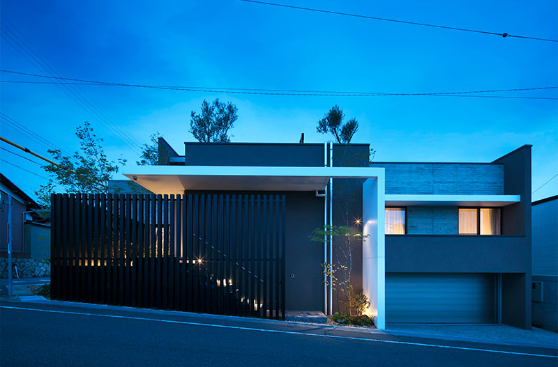 三重県北部桑名市の中心部より西、なだらかな丘を上った場所に建つ住宅。その場所は周囲に対して高低差があり眺望も良く、遠くは名古屋の高層ビル群まで望むことができる。