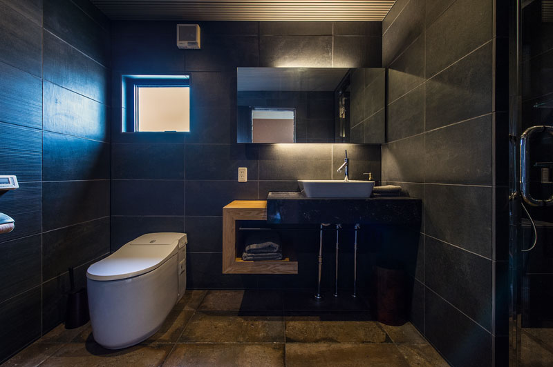 2階はプライベート空間となっているが、やはり『和』を意識した築山のある坪庭や茶筅のペンダントなど象徴的なデザインを採用させて頂いた。東南側の海に向かった大きな開口からは大阪湾が見渡せ、海と空と太陽と星と共にゆっくりとした時間の経過を感じられる空間とした。