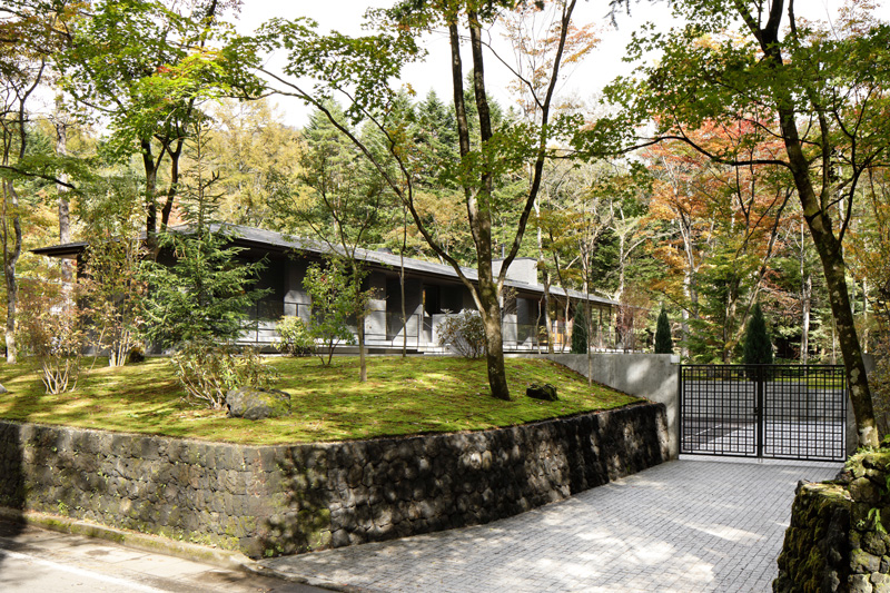 敷地は道路から少し高くなっており、1.5m程度の浅間石の石積が軽井沢らしい雰囲気を醸し出してくれています。