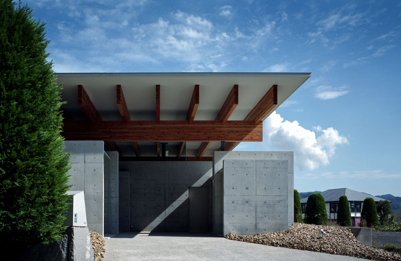 一方、大屋根はコンクリートの大壁の上に無垢の鉄柱で持ち上げて支持することで、大屋根と大壁の間から見える空が室内にいながらも解放感を与えてくれるようにしています。