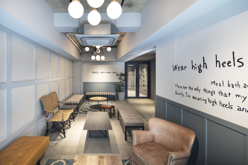 事業計画として、5年ほどの運営となる施設なのでローコストで計画する必要がありました。注意深く既存建物の状況を読み取り、凸凹や空隙をデザインの手がかりとして仕上げや質感・色の繊細な切替えで豊かな空間になるように設えました。