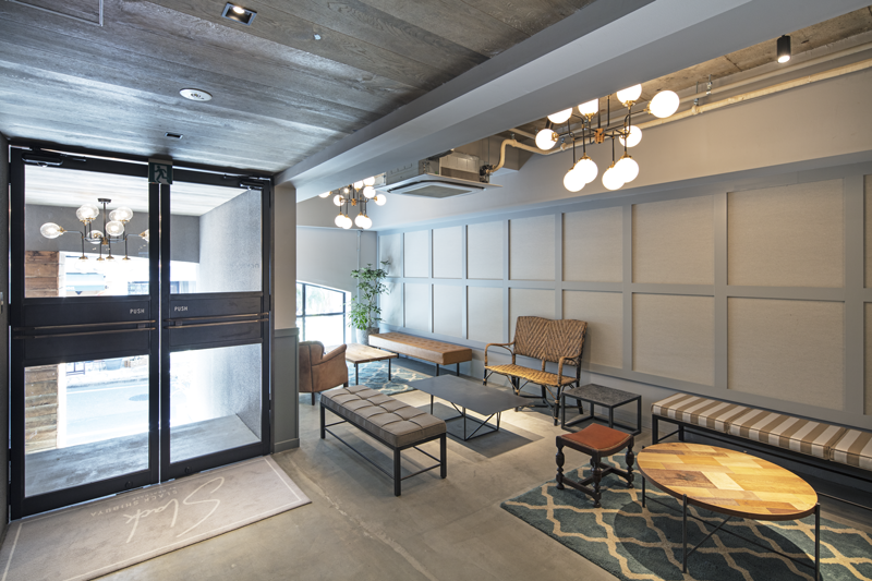 渋谷区桜丘の246沿いにある築30年11階建の集合住宅をオフィスへコンバージョンしたプロジェクト。わたしたちは、主に南館のファサードと共用部のデザインを担当しました。