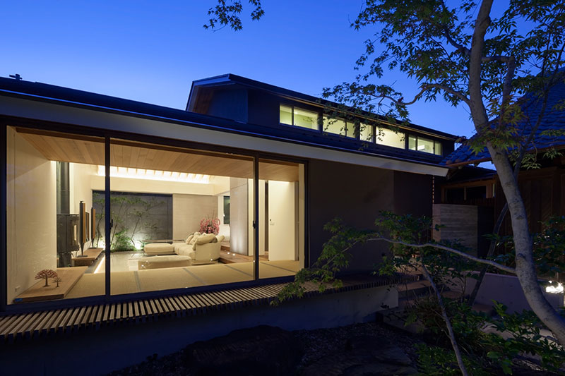 成長し、巣立っていく子供たちにとってはこの家が原風景となり、日が暮れて迎門をくぐると、前庭の木々越しに浮かんで見える、灯りがついたリビングが、家族にとって帰る場所になるような家になってほしいと願っている。